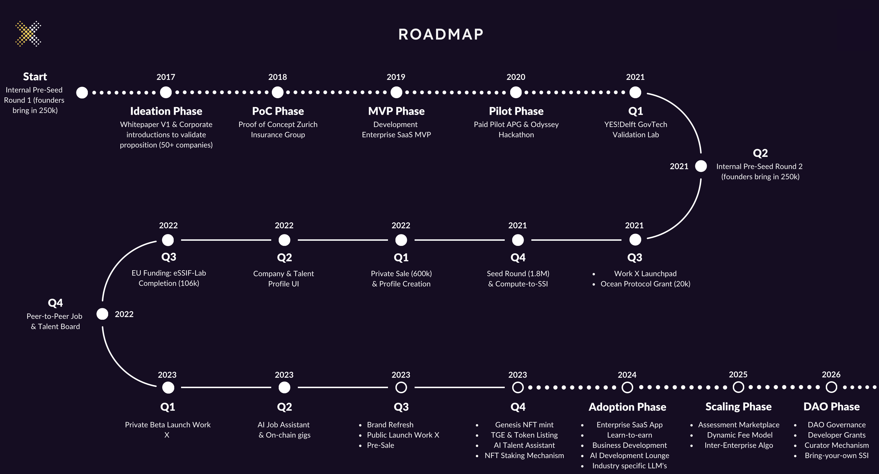 The first fully decentralized job economy that allows people to collaborate without commercial middlemen like UpWork or Indeed, enabling AI Job matching empowering both talent and employers without the need to possess Web3 knowledge. Work X offers a dynamic cost-covering fee model that can scale down in costs due to learning effects & economies of scale & scope. This optimizes salaries for workers and minimizes service costs for employers.